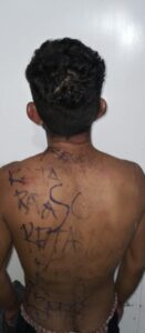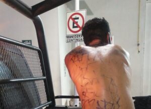 Los uniformados arribaron a la calle Francisco González Bocanegra y ahí, los vecinos de la zona tenían atado de manos y pies Edgar Eduardo Solos Magadan de 25 años de edad, y a quien habían provocado lesiones en cuerpo, además de que con un plumón le rayaron la espalda con la leyenda Rata.