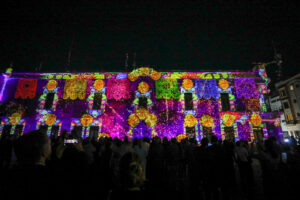 En una noche llena de luces, colores de temporada y bailes de fiesta, la gobernadora de Aguascalientes, Tere Jiménez, disfrutó el espectáculo “Altares vivientes” y el mapping “La historia de la Catrina”, que se realizaron en las instalaciones del Palacio de Gobierno del Estado, en compañía del alcalde Leonardo Montañez, de la secretaria de Turismo, Gloria Romo Cuesta, y del Gabinete Estatal.