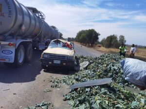 EL percance se registró 7 de Marzo, cuando la víctima se desplazaba a bordo de una camioneta Ford, en color crema, cargada con coliflor, sobre la 45 Norte, a la altura del Libramiento a San Francisco de los Romo, algo ocurrió que perdió el control del volante para después volcarse, quedando otras vez sobre sus 4 llanas.