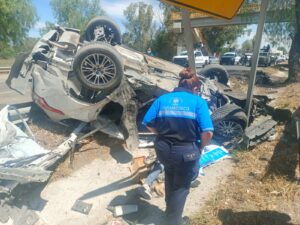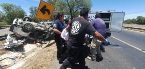 Al sitio se trasladaron policías estatales, personal de Protección Civil de Pabellón encabezados por el comandante Edgar Solís, quienes se encontraron con una camioneta Ford Escape 2014 color blanco, con las llantas apantanando hacia arriba y completamente destrozada.