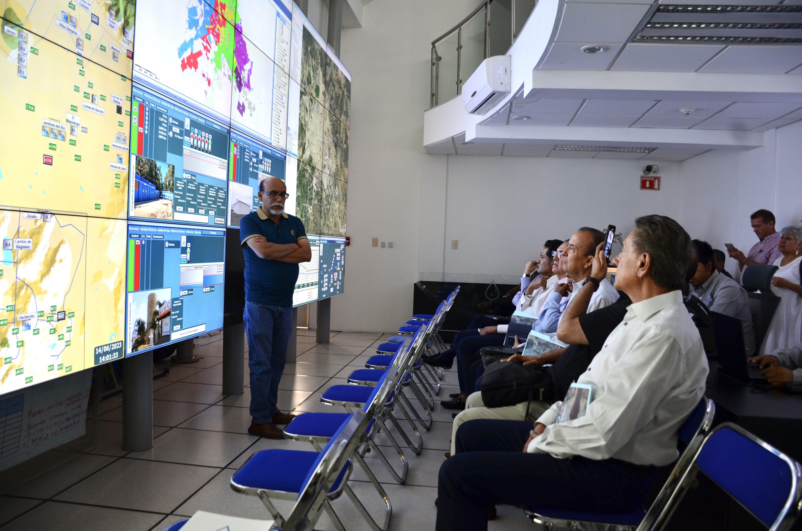 Durante la visita, también se realizó un recorrido por el Centro de Monitoreo y Control, que mediante un video muro monitorea en tiempo real el sistema de operación, la red de agua potable, así como supervisar pozos, rebombeos y tanques.