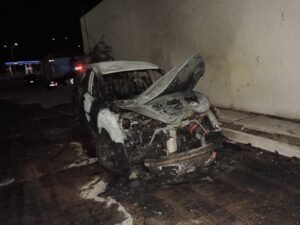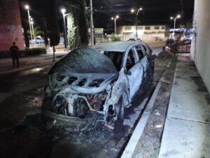 Posteriormente en la calle Pedro García Rojas esquina Estaño en el Fracc. Fundición, junto al horno de la fundición reportaron que una camioneta estaba incendiada, al llegar policías se encontraron una Honda CRV en color negro con placas de circulación AAP726C, según testigos sus ocupantes, tras prenderle fuego corrieron a una camioneta SIERRA donde ya los estaban esperando, para después darse a la fuga.