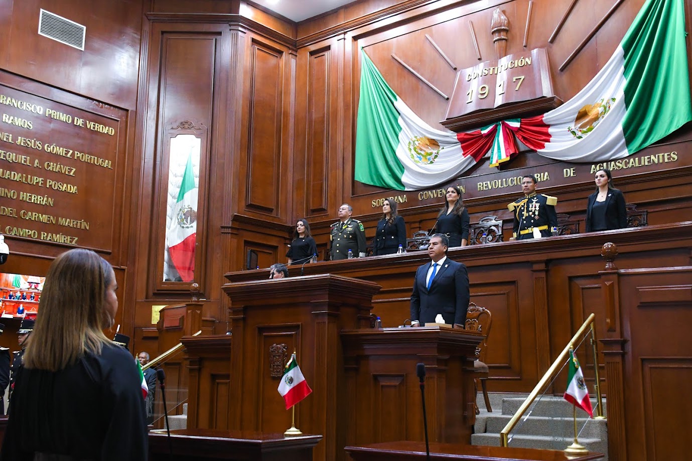 En sesión solemne, el Pleno de la LXV Legislatura del Congreso de Aguascalientes, conmemoró los 200 años del Heroico Colegio Militar con la develación de las letras doradas “2023, Año del Bicentenario del Heroico Colegio Militar”, que quedaron inscritas en el muro del Recinto Oficial Soberana Convención Revolucionaria de Aguascalientes, a propuesta de la diputada Ana Gómez Calzada y el legislador Maximiliano Ramírez Hernández.