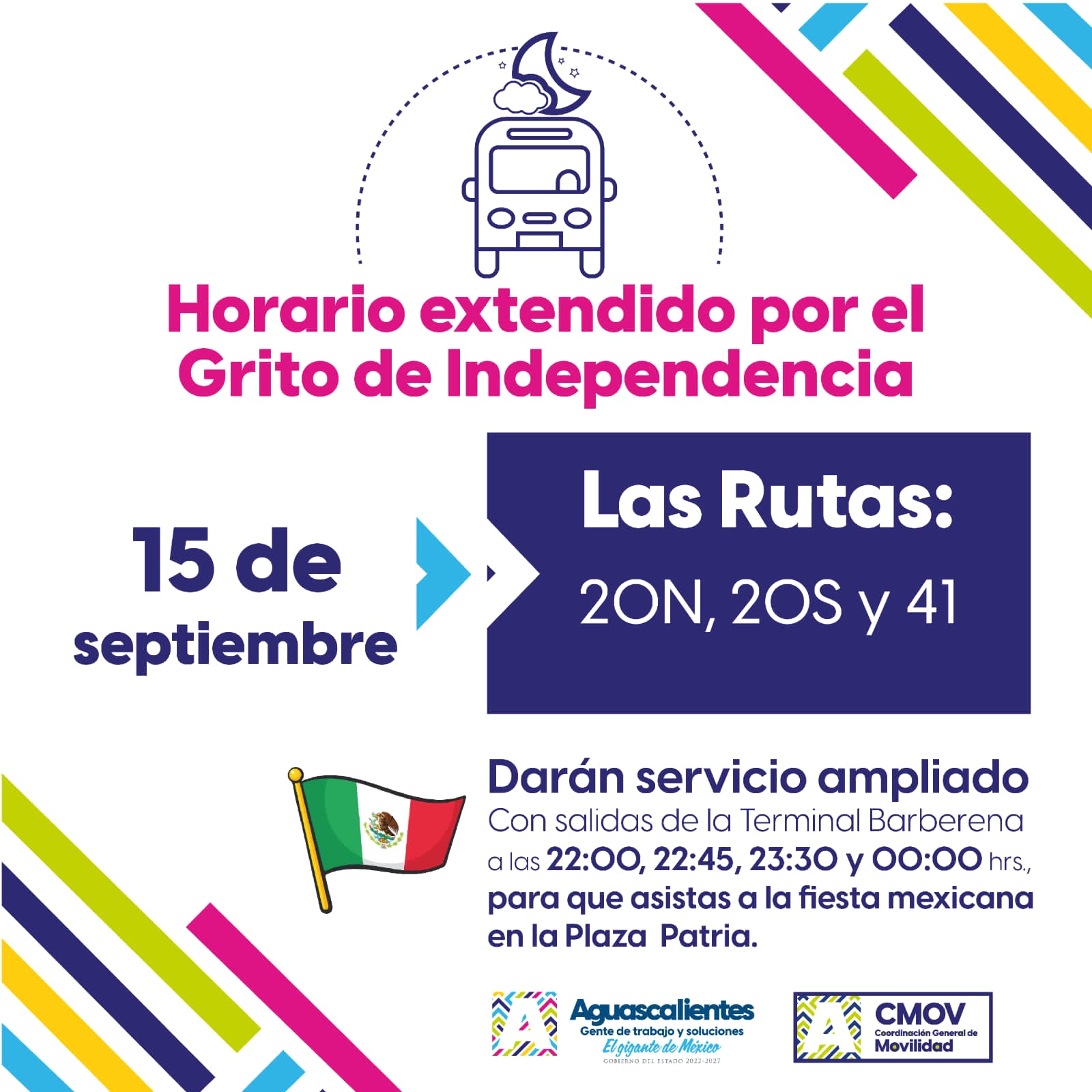 Con el fin de facilitar el traslado de las personas que acudirán esta noche a la ceremonia del Grito de Independencia en la Plaza Patria, la gobernadora de Aguascalientes, Tere Jiménez, dispuso un servicio especial de transporte público con horario extendido y en puntos estratégicos.