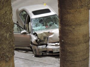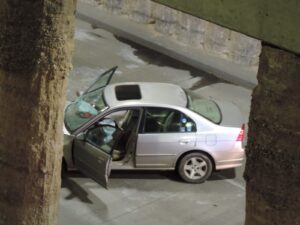 Al sitio se trasladaron Policias viales y paramédicos, quienes al llegar se encontraron con un Honda Civic en color arena con placas de Aguascalientes AFL465A con el frente completamente destrozado, al revisar al interior observaron que su conductor se encontraba recostado sobre el asiento del conductor y del copiloto, al revisarlo, confirmaron que este ya había fallecido.