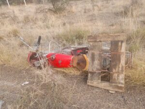 Asimismo, a unos metros de distancia se encontraba una motocicleta marca Islo, color rojo, con placas de circulación del Estado de Aguascalientes, en la cual se desplazaba el hoy occiso.