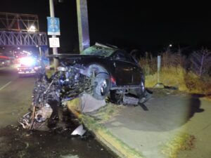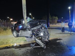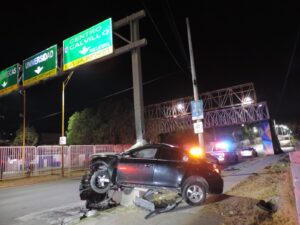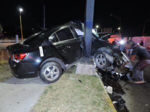 El aparatoso accidente se registró pasadas las 2 de la mañana sobre Avenida Aguascalientes Poniente esquina con Bulevar San Marcos en el Fracc Barranca de Guadalupe.