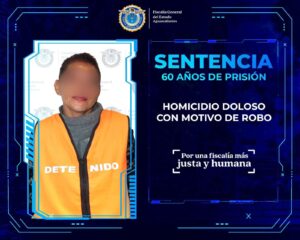 Como consecuencia, se le impuso una pena de 60 años de prisión y 350 días multa, equivalentes a $36,309.00 pesos, además del pago de $85,000.00 pesos por el monto de lo robado, $50,355.00 pesos por servicios funerarios, y la reparación del daño por un total de $2,074,400.00 pesos. Asimismo, se ordenó que, una vez que recobre su libertad, deberá abstenerse de acercarse a menos de 500 metros de las víctimas indirectas.