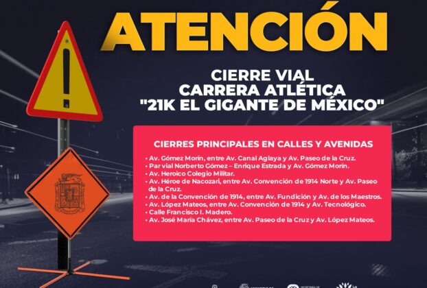 CIERRES VIALES POR LA CARRERA ATLÉTICA “21K EL GIGANTE DE MÉXICO”