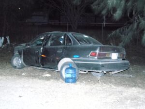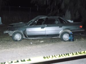 Ante esto se trasladaron al lugar los elementos estatales, municipales, de Protección Civil y paramédicos quienes al llegar se encontraron con un vehículo marca Ford Topaz color gris, modelo 1993, con placas de circulación del Estado de Aguascalientes.