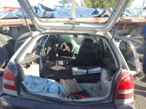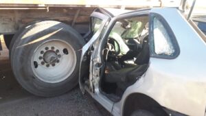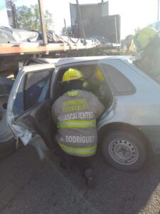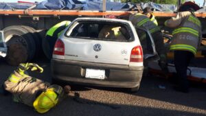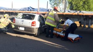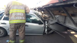 De inmediato, los bomberos se trasladaron al punto referido, al llegar, observaron un vehículo Volkswagen, Pointer, color gris, prácticamente debajo de la plataforma del tráiler.