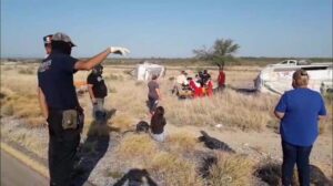 Un grupo de aguascalentenses que viajaban desde Colorado, Estados Unidos con dirección a esta ciudad, protagonizaron una aparatosa volcadura de una camioneta tipo Van que dejó como saldo 16 personas lesionadas que fueron trasladados a diferentes hospitales en varias ambulancias principalmente de la Cruz Roja.