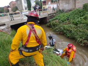 Al arribar se observó a un hombre de entre 25 y 30 años de edad el cuál se encontraba atorado en posición fetal en el pilar central del puente, por lo que los bomberos descendieron para valorar a la persona sin detectar signos vitales, por lo que se comenzó con las maniobras extracción con el equipo de cuerdas después de varios minutos se entregó el cuerpo sin vida a elementos de servicios periciales.