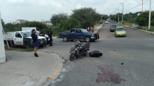A su arribo procedieron a brindarle los primeros auxilios a Diana Ibarra Ojeda 32 años que conducía una motocicleta marca Italika, en color negro, misma que tras la valoración de los paramédicos fue trasladada a recibir atención médica en código rojo al Hospital General de Zona número 3 del IMSS, donde minutos después murió.