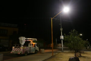 El presidente municipal, Leonardo Montañez, visito la comunidad de San Antonio de Peñuelas, a la altura del parque Peñuelas y la avenida Revolución, donde supervisó los trabajos de colocación de nuevas luminarias.