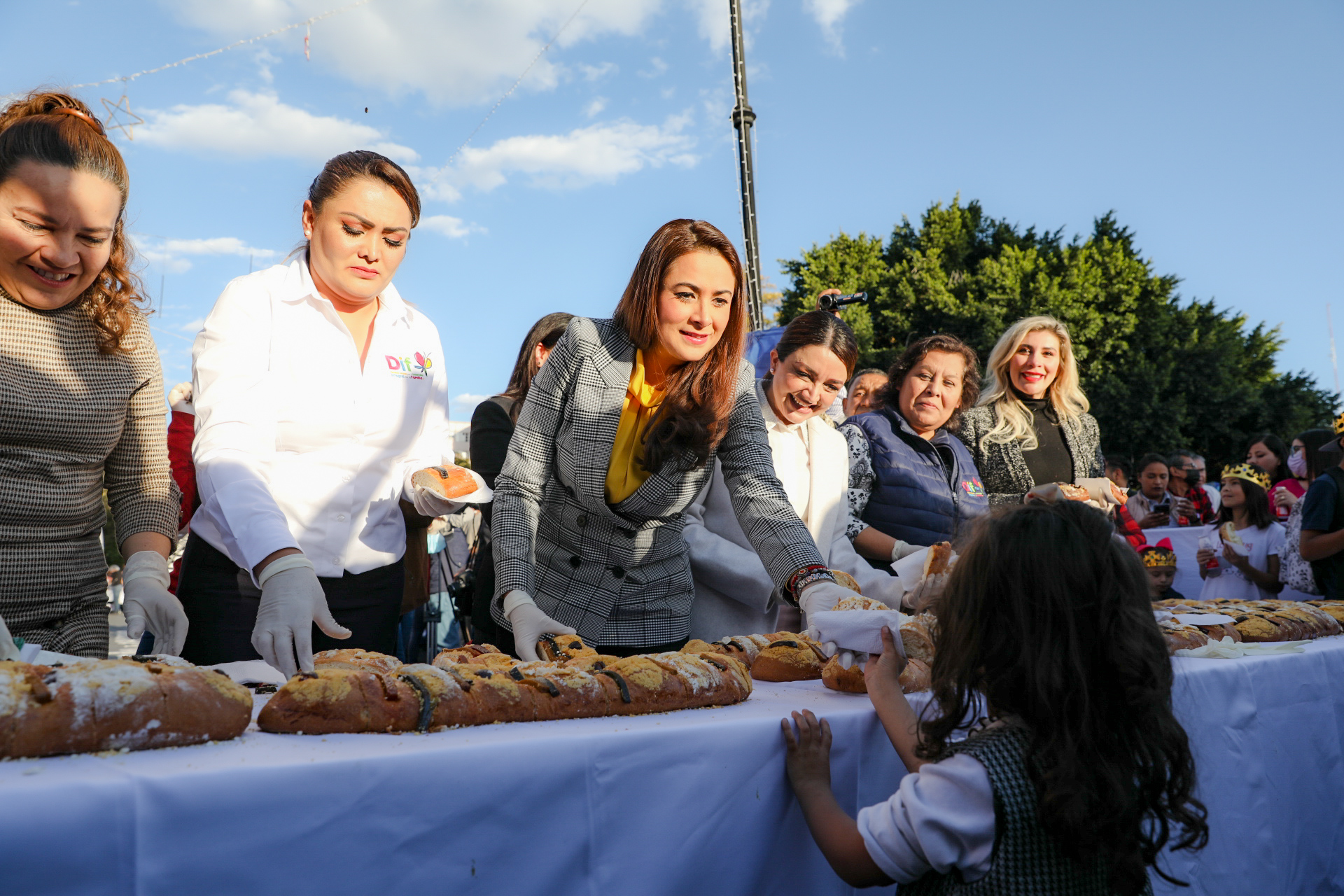 Las niñas, niños, jóvenes y personas adultas que se dieron cita en la Av. Francisco I. Madero, disfrutaron de una deliciosa rosca hecha por las manos de 79 personas del Grupo de Industriales Panaderos de Aguascalientes (Gipan); además hubo diversos regalos para los más pequeños.
