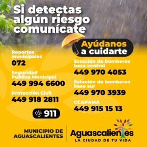 La Presidencia Municipal de Aguascalientes, a través de la Coordinación Municipal de Protección Civil, presentó el operativo para la “Temporada de Lluvias y Huracanes 2023”, el cual contiene las acciones de prevención, auxilio y recuperación, para el período del 15 de mayo al 30 de noviembre, que se realiza de forma conjunta con los diversos órdenes de gobierno para prevenir los riesgos que implican estos fenómenos naturales.