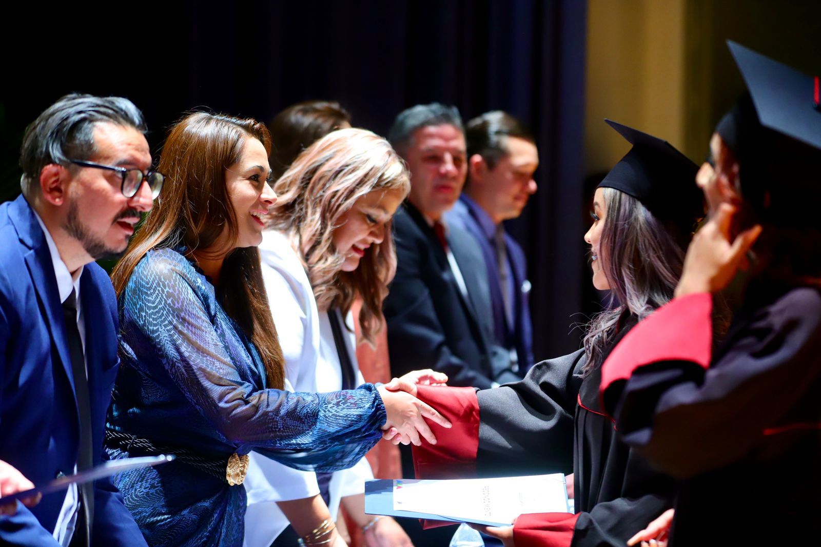 “Felicidades por llegar a esta etapa de su vida, me siento muy orgullosa de ustedes; las que hoy se gradúan como licenciadas tienen en sus manos el futuro de muchos seres humanos, como maestras tienen que dar un gran ejemplo. A las que salen de la preparatoria, sigan cumpliendo sus sueños, la vida es de mucho esfuerzo y trabajo”, dijo la gobernadora en la ceremonia en el Auditorio DIMO.