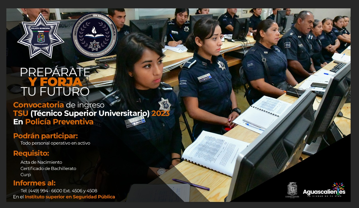 La Secretaría de Seguridad Pública Municipal de Aguascalientes (SSPM) prepara la carrera de Técnico Superior Universitario (TSU) en Policía Preventivo, en un formato en línea que sería complementado con prácticas y evaluaciones en campo; siendo con ello pioneros en formación profesional de este tipo.