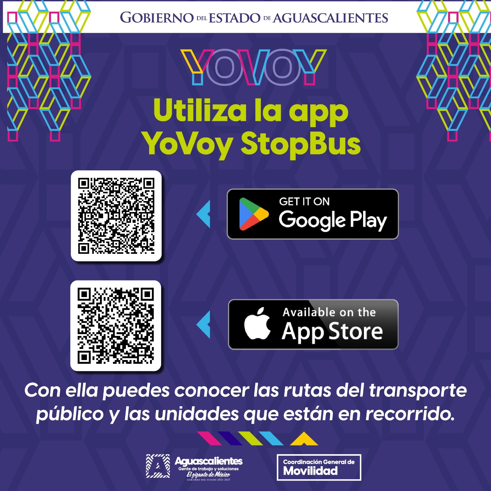 La Coordinación General de Movilidad (CMOV) invita a los usuarios de los camiones urbanos a utilizar la aplicación YoVoy StopBus, la cual se encuentra disponible para su descarga gratuita en la App Store y Google Play.