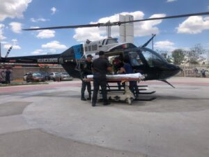 Paramédicos del helicóptero “Halcón Uno” de la Secretaría de Seguridad Pública Municipal de Aguascalientes (SSPM) realizaron un traslado aeromédico de un menor de edad que sufrió quemaduras por fuego directo en rostro, brazos y tórax desde el municipio de Pabellón de Arteaga para ser ingresado en el área de urgencias del Hospital General de Zona número 3 del IMSS, del municipio de Jesús María.