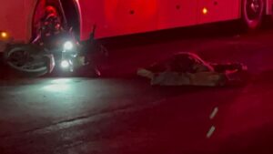 El mortal accidente se registró la noche de este jueves cuando a los servicios de emergencia reportaron que en la 45 Sur pasando la puerta de acceso se había registrado un desigual choque entre camión y una motocicleta, donde sus ocupantes se encontraban tirados en el piso.