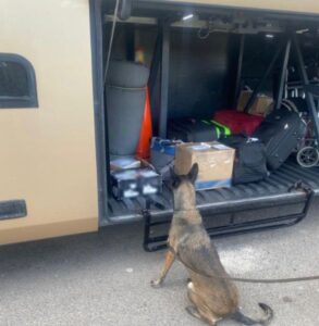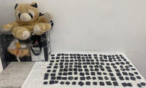 Este manifestó que habían salido de la Ciudad de México y tenía como destino nuestro estado, al momento de revisar el equipaje con el binomio canino, uno de los perros marco una caja de cartón por lo que decidieron abrirla, encontrando en su interior un peluche, al momento de revisarlo descubrieron a su interior 150 dosis de cocaína.