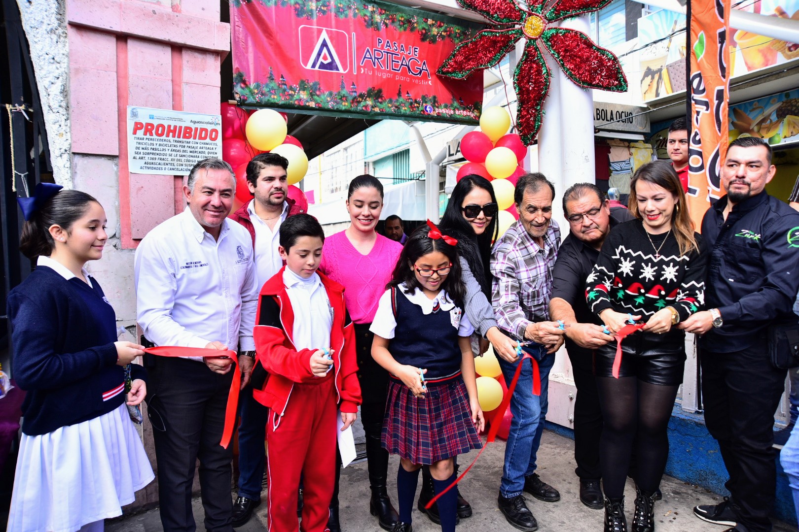 Durante el corte de listón estuvieron presentes el regidor Carlos Ortega Tiscareño, presidente de la Comisión de Desarrollo Económico, Turismo y Asuntos Internacionales e Israel Díaz, director de Mercados, Estacionamientos y Áreas Comerciales y locatarios del Pasaje Arteaga.