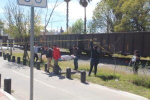 Al llegar Policías municipales se encontraron con el tren de FERROMEX con ruta de Irapuato a San Francisco los Romo, mismo que circulaba de sur a norte y era conducido por Salvador de 51 años de edad y como garrotero Rafael N de 31 años de edad, quienes señalaron que se encontraban en ruta cuando determinaron momento se detuvieron luego de que varias personas les hacían señas con los brazos, al revisar los vagones traseros y ver que estabas ocurriendo, mediante una revisión visual localizaron bajo el vagón con número 935373 el cuerpo de un hombre de 50 años de edad aproximadamente, sin calzado, que vestía un pantalón gris tipo mezclilla, sudadera verde olivo, camisa manga larga a cuadros en color negro con gris, cabello negro ondulado.