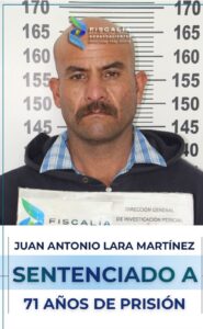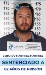 Se trata de Alfredo Aguiñaga Hernández, quien deberá de pasar 84 años de prisión, el segundo Valerio Sánchez Negrón, que recibió una condena de 82 años de cárcel; Gerardo Martínez, que también pasara 82 años tras las rejas, y finalmente Juan Antonio Lara Martínez, quien deberá de pasar 71 años en prisión, por los delitos de privación ilegal de la libertad y lesiones dolosas calificadas en agravio de las víctimas identificadas con las iniciales E.U.M.R. y A.J.D.S.
