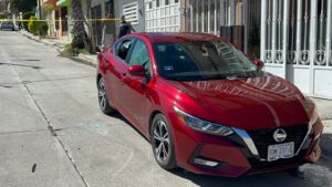 Al llegar al cruce de las calles Ángela Peralta y Concepción Arenal, observar estacionado un Sentra en color guinda con el medallón y los vidrios laterales derechos destrozados y el parabrisas con al menos dos impactos de bala.