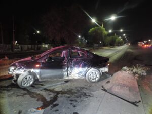 Al momento de tomar el puente que libra el cruce de la carretera 35, en la parte alta se le revienta un neumático a la Chevrolet lo que provoca que el conductor pierda el control del volante recargándose contra el Vento, tras este impacto el conductor del Volkswagen pierde el control del volante proyectándose contra el muro de contención lateral donde se impacta y sale rebotado contra el camellón central se sube al mismo derribando un señalamiento vial y posteriormente se contra un árbol para luego salir rebotado hacia el carril derecho.