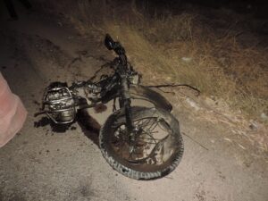 Según las autoridades el vehículo se desplazaba sobre la 42 en dirección sur-norte al llegar frente a Mangata Residencial, se encuentra de frente contra la motocicleta cual se desplaza de norte-sur, tras el brutal impacto el carro hace un giro de 180° mientras que la motocicleta se parte en dos.