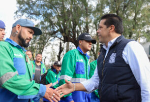 Tere Jiménez entregó la medalla de plata “Ezequiel A. Chávez” a docentes con 30 años de servicio, mientras que los maestros y maestras con 40 años fueron galardonados con la medalla de oro “Maestro Altamirano”, como reconocimiento a su dedicación y esfuerzo.