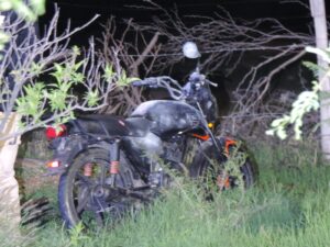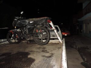 Una hora después elementos de la policía municipal localizaron la motocicleta italika 125cc color negro con vivos en color rojo utilizada por los agresores.