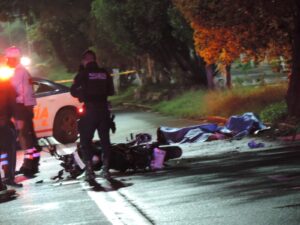 A bordo de una motocicleta Suzuki en color negro, viajaban dos jóvenes sobre la Mahatma Gandhi, en el sentido de circulación de sur a norte, debido al exceso de velocidad y la falta de pericia el conductor perdió el control del manubrio proyectándose contra el camellón para terminar estrellándose brutalmente contra un árbol.