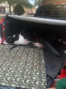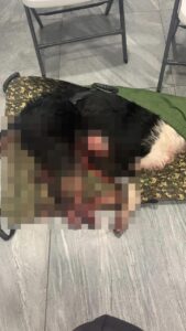 ¨En un acto demasiado sádico agarra la tripa que le colgaba y comenzó a tirar de ella extrayendo todas las tripas de su interior , el perro se acostó en suelo, perdiendo así mucha sangre , llego mucha gente al lugar saliéndose de sus casas , le amarraron el hocico, lo subieron a un coche y llevarlo al veterinario, quien les comento que era imposible que el perro viviera después de una cirugía , que podría morir de una infección … y murió ¨Scooby¨