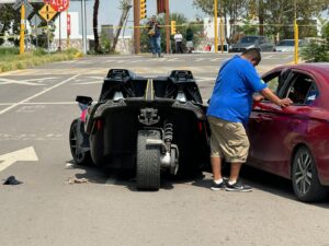 La victima que era conocida como Junior, se desplazaba a bordo de un vehículo Pulsa Slingshot de tres llantas, sobre Canal Interceptor en el sentido de poniente a oriente, al llegar a las vías, el tren estaba pasando por lo que detuvo que detener su marcha.