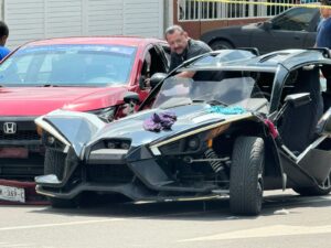 Una vez que concluyó el paso de la bestia, cuando apenas iba avanzar, apareció escena un vehículo gris, donde se bajó un sujeto, según lo describieron testigos, tatuado de los brazos y cuello quien sacó un arma de fuego y disparo en por lo menos 2 ocasiones a quema ropa, la victima en su objetivo de escapar hizo la maniobra en reversa estrellándose contra Honda City en color rojo, que estaba detenido.