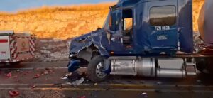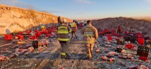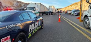 Y un tráiler marca Freightliner, color blanco, con láminas del Servicio Público Federal, con razón social TIUSA, que era manejado por Ricardo Uriel, de 40 años de edad el cual presentaba daños en su parte lateral izquierda, unidades que obstruían en su totalidad la cinta asfáltica, además de que la carga de la unidad de la empresa refresquera se encontraba regada en la carretera.