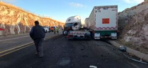 En el sitio se encontraba también un tráiler marca International color azul, con matrícula del Servicio Público Federal, con razón social TCC y un remolque tipo tanque, el cual se encontraba dañado en su parte frontal, mismo que era manejado por Jaime Roberto, de 36 años de edad, quien presentaba golpes menores.