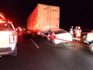 Los vehículos involucrados son un Nissan Versa en color blanco con placas de Jalisco, que era conducido por la victima un hombre de 40 años aproximadamente, el segundo un tráiler con caja seca con número económico 50 de la empresa transportes Valadez.