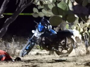 La víctima no ha sido identificada, solo se sabe que es un hombre de 40 y 45 años, que vestía una playera en color rojo con franjas negras en los laterales, además de un pantalón en color negro y a unos cuantos metros estaba motocicleta Italika en color azul