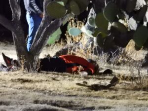 En el servicio de emergencia una mujer identificada como Jaqueline reporto que al ir caminando por un predio rústico observo a un hombre tirado en el suelo, a un costado de un mezquite, quien presentaba huellas de sangre.