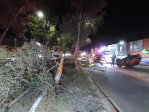 El vehículo se desplazaba a velocidad inmoderada en dirección poniente-oriente cuando la conductora impactó contra el camellón central, chocó contra un árbol y luego derribó un segundo árbol antes de volcar sobre su techo.
