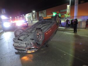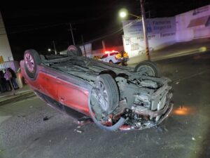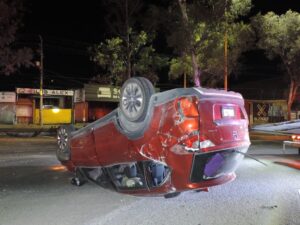 El accidente ocurrió en la colonia Los Negritos, en el bulevar Adolfo Ruiz Cortínez esquina con Vergelitos, donde una conductora de entre 30 y 35 años de edad perdió el control de su vehículo, un Honda BR-V rojo con placas de Zacatecas.