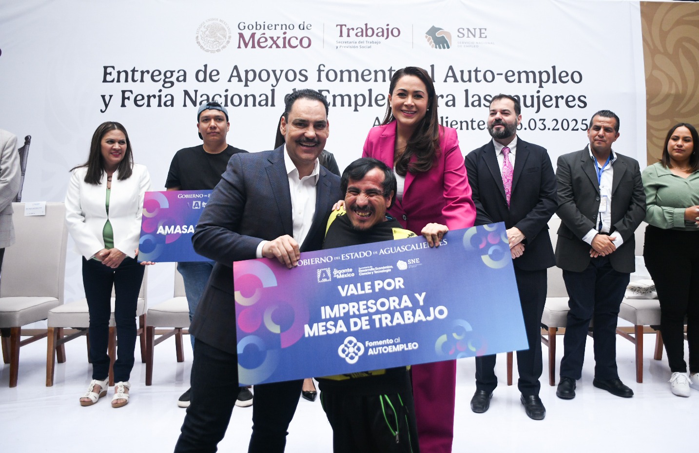A través del programa Fomento al Autoempleo, la gobernadora de Aguascalientes, Tere Jiménez, entregó maquinaria y equipo de trabajo a emprendedores que tienen como objetivo iniciar y fortalecer sus negocios; en total se beneficiará a 386 personas.