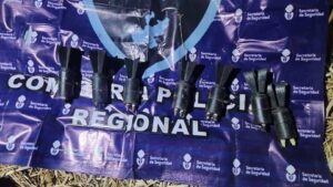 En la ampliación de la búsqueda para descartar riesgos, el equipo antibombas localizó siete artefactos explosivos aire-tierra que presuntamente serían lanzados desde drones, así como tres rollos de cable para detonar carga explosiva.