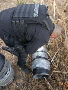 Tras dar aviso a un agente de la Fiscalía General de la República, el material contenido en cilindros fue destruido por motivos de seguridad en el sitio del hallazgo.