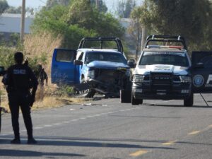 La camioneta abandonada fue una Ford F-150 línea Raptor, en color azul y sin placas de circulación, la cual resultó con reporte de robo vigente en Guanajuato.